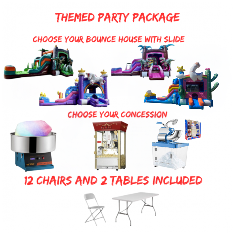 - Choose Themed Bounce house with slideThemed Party Package:Choose Themed Bounce house with slide1Dropdown12134421_21344191111