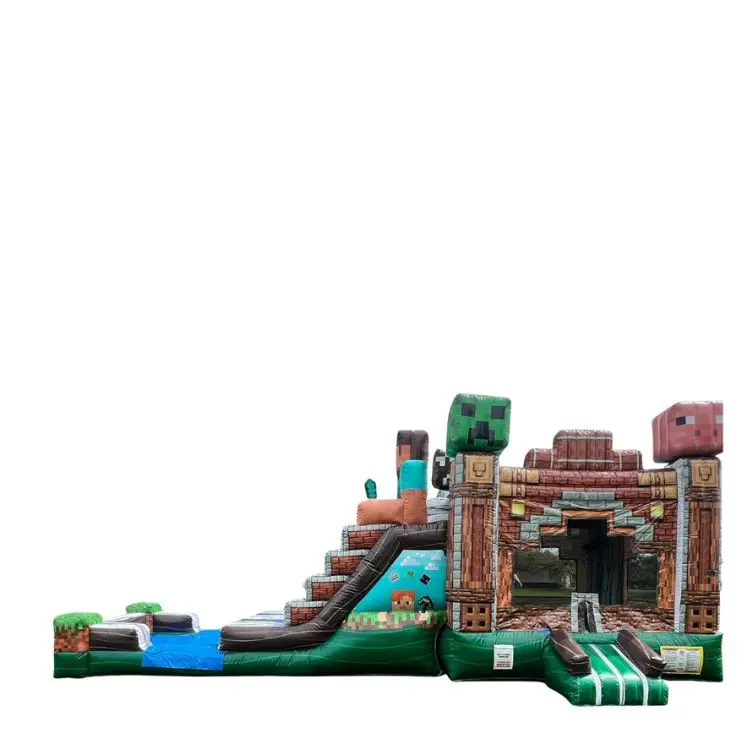 With bold, blocky graphics and a vibrant pixelated design, this inflatable bounce house brings to life the look and feel of a popular video game world — minus the screen time! Kids will instantly recognize the familiar gaming-inspired theme that sparks imagination and fuels nonstop fun. Bright green, brown, and gray "pixel blocks" create a 3D visual that pops in photos and turns any backyard into an interactive pixel playground.